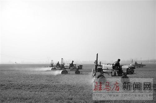 為農(nóng)民植保專業(yè)合作社隊(duì)員在進(jìn)行“一噴三防”作業(yè)。 記者 郭連山 攝