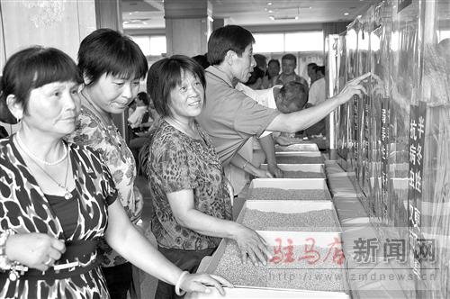 摘要: 7月10日,市噸源種業(yè)舉行新麥26推廣暨小麥新品種訂貨會,全市300多名種子經(jīng)銷商現(xiàn)場簽訂訂單金額400多萬元。圖為種子經(jīng)銷商在選擇小麥品種。記者 郭連山 攝