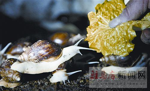 摘要: 12月17日,在西平縣宋集鄉(xiāng)于橋村農(nóng)民于春奎不到5平方米的養(yǎng)殖房里,潮濕、陰暗的幾排架子上放著三四層泡沫飼養(yǎng)箱,掀開箱蓋,只見上百只肉色白潤(rùn)、肥壯的蝸牛正啃食著嫩綠的菜葉。 “這就是