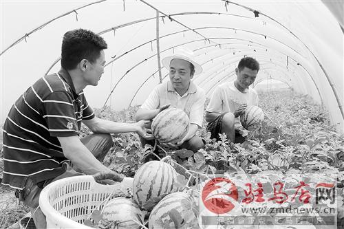 眼下,驛城區(qū)水屯鎮(zhèn)石莊村100畝大棚里的新品種西瓜陸續(xù)“走進(jìn)”超市。由于該西瓜品種皮薄甘甜,不僅深受消費(fèi)者的青睞,而且種植西瓜的群眾收入可觀。記者 鄭付生 通訊員 米 山 攝影報(bào)道