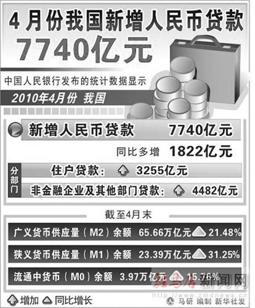 四月份我國(guó)新增人民幣貸款七千七百四十億元