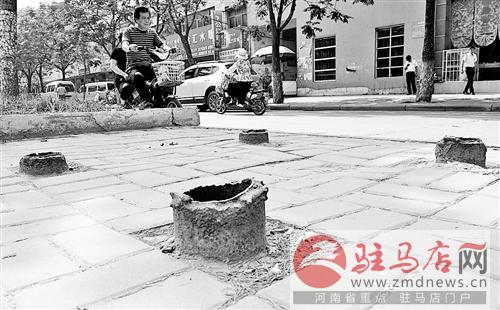 “這里原來(lái)豎有廣告牌,廣告牌拆除后,就留下了4個(gè)障礙物。”王雪說(shuō)。記者在現(xiàn)場(chǎng)看到,在慢車道與快車道之間冒出4個(gè)直徑約10厘米、高約5厘米的鐵管。
