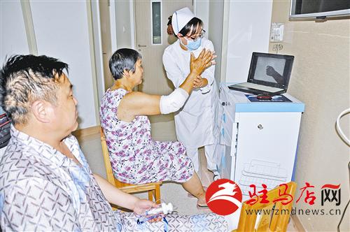 近日,市中心醫(yī)院骨三科推出了特色健康教育服務(wù),醫(yī)護(hù)人員通過病房電子屏幕或電腦,為患者播放康復(fù)鍛煉的光盤,向患者及家屬詳細(xì)講解各種骨科疾病鍛煉的目的、方法及注意事項等內(nèi)容,并進(jìn)行場指導(dǎo)與演示,使患者能夠正確掌握規(guī)范的康復(fù)訓(xùn)練方法及姿勢。此舉受到患者及家屬的歡迎。這是醫(yī)務(wù)人員在進(jìn)行特色健康教育的情景。
