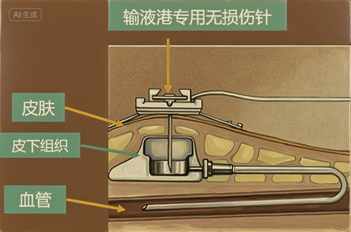 手臂式輸液港是一種以手臂貴要靜脈、肱靜脈等作為入路,將導(dǎo)管植入并完全埋入手臂皮下的閉合靜脈輸液系統(tǒng)。它由供穿刺的港座和靜脈導(dǎo)管系統(tǒng)組成,可用于輸注藥物、液體、營養(yǎng)支持治療、輸血及血樣采集等。