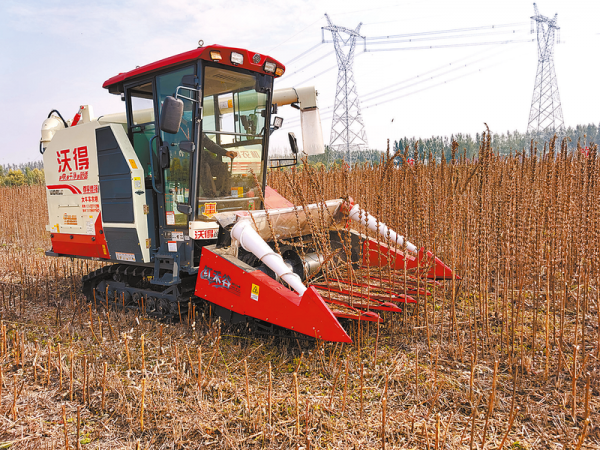 聯(lián)合收割機收獲芝麻。