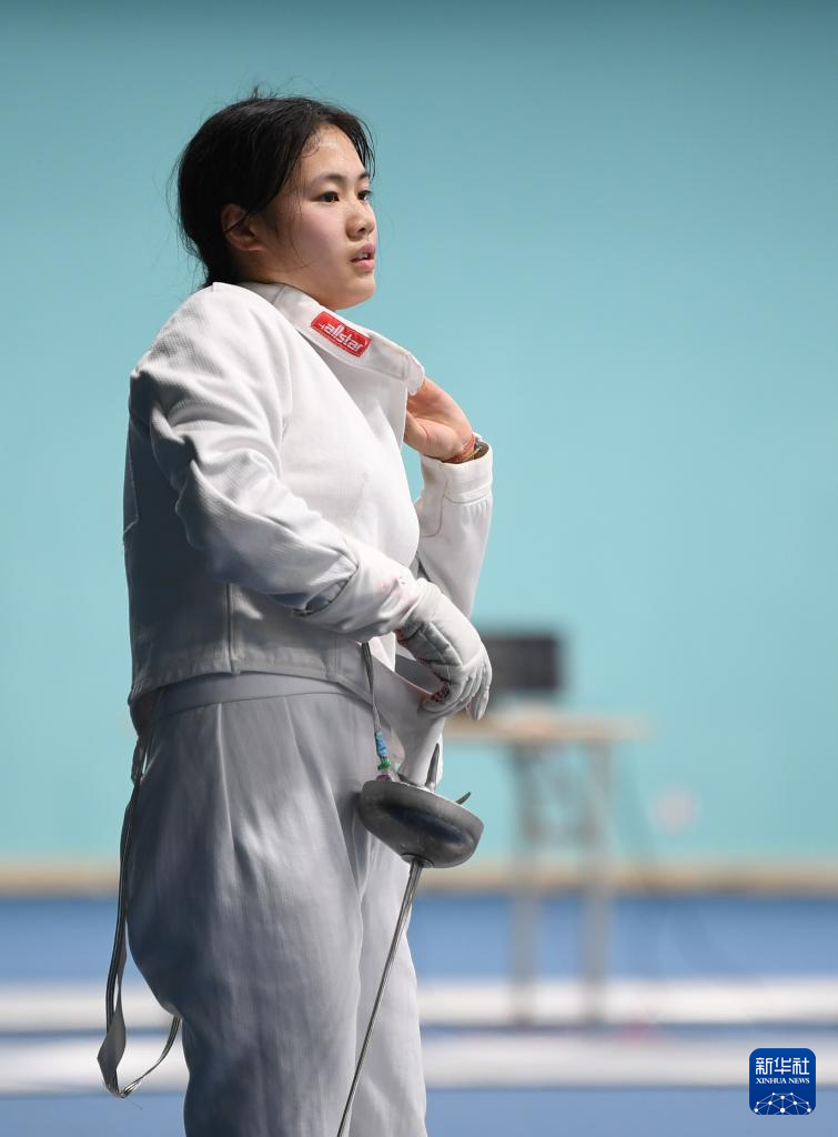 1月15日,現(xiàn)代五項國家隊運動員吳希瑤在擊劍訓(xùn)練間隙。