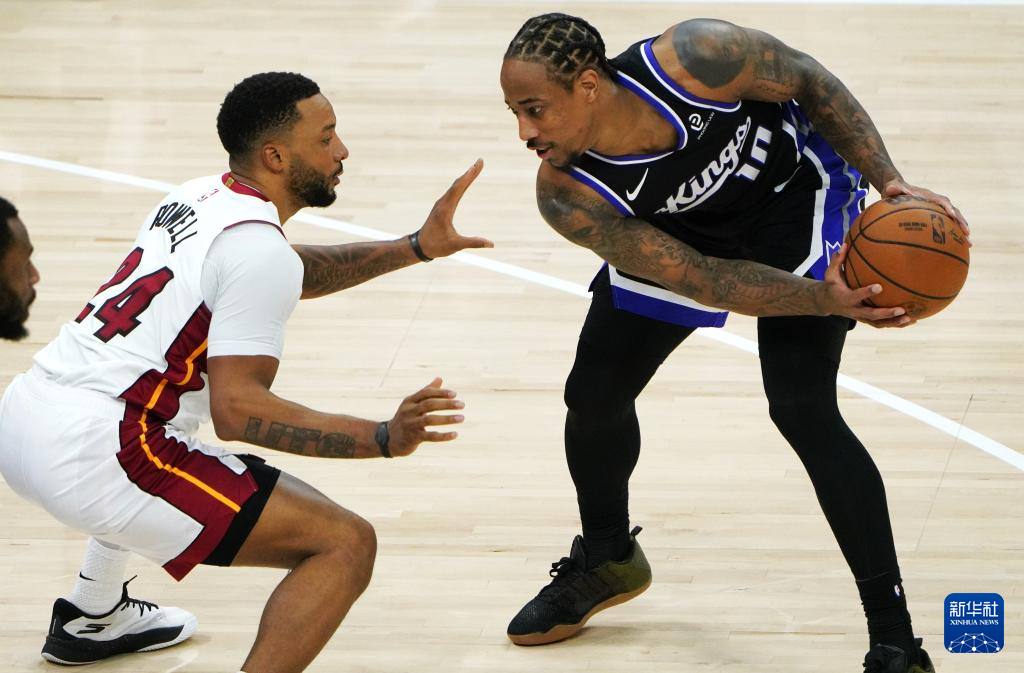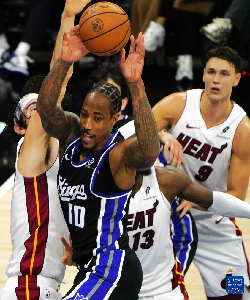 1月20日,國王隊(duì)球員德羅贊(上左)與熱火隊(duì)球員巴姆·阿德巴約(上右)在比賽中。