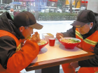 “歡迎啊,城市美容師。”志愿者們熱情地招呼著,手中的勺子不停揮動,盛起一碗碗臘八粥遞到環(huán)衛(wèi)工人手中,還貼心地配上兩個熱乎乎的包子。捧著溫?zé)岬闹嗤?,環(huán)衛(wèi)工人們連連道謝:“這粥暖胃又暖心。”