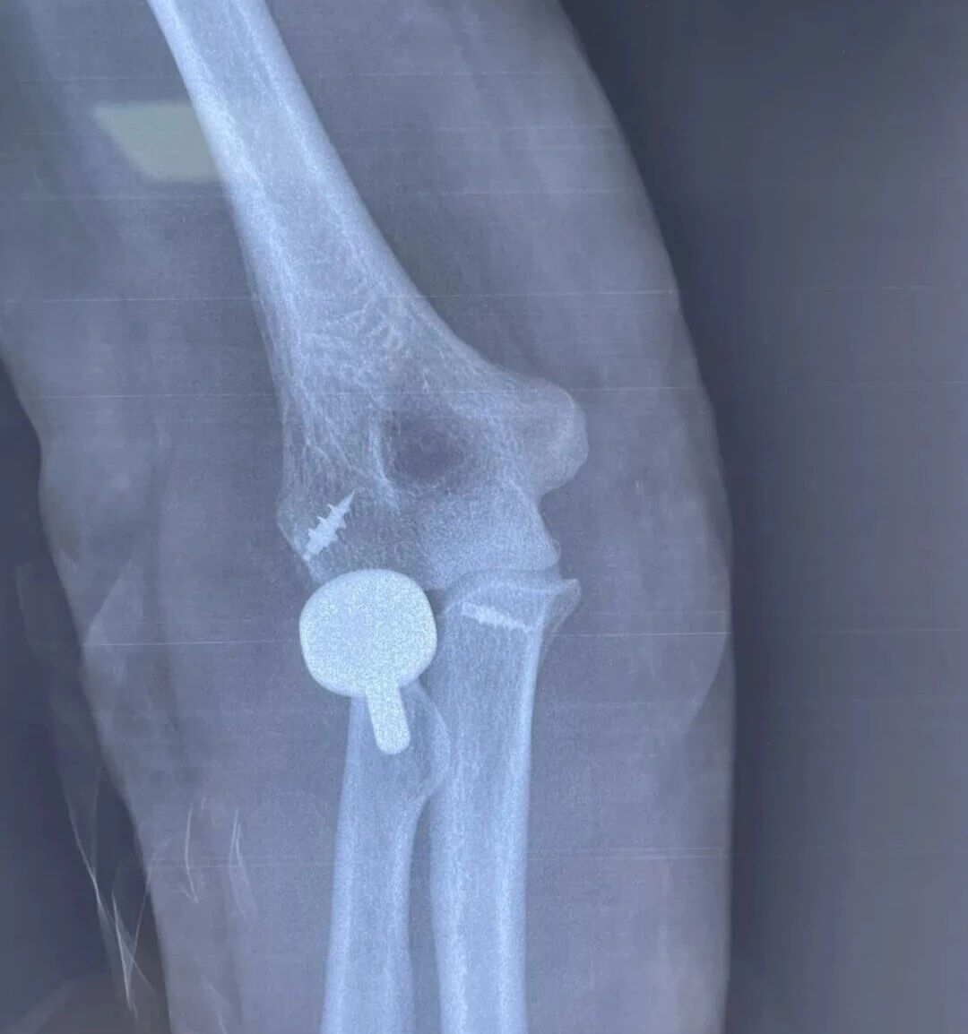 可能很多人對“肘關(guān)節(jié)恐怖三聯(lián)征”感到陌生,簡單來說,這是一種非常嚴(yán)重的肘關(guān)節(jié)損傷,核心是肘關(guān)節(jié)向后脫位,同時還伴隨橈骨頭移位和尺骨冠狀突骨折。趙女士的情況更為特殊,她屬于55歲橈骨頭粉碎性骨折,骨頭大面積壓縮缺損。如果采用切開復(fù)位內(nèi)固定,不僅復(fù)位難度極大,固定后也無法保證穩(wěn)定,后續(xù)還可能出現(xiàn)股骨頭壞死的情況;而她年紀(jì)不算大,切除橈骨頭會影響關(guān)節(jié)功能,顯然也不適合。