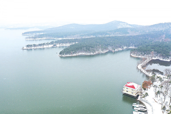 近日,泌陽銅山湖湖水凝結成通透冰藍,宛若溫潤玉髓,澄澈圣潔。