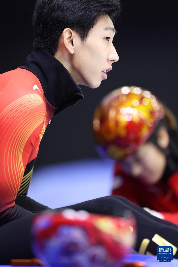 1月29日,中國(guó)短道速滑隊(duì)選手林孝埈在訓(xùn)練前做準(zhǔn)備。