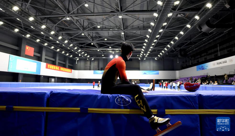 1月29日,中國(guó)短道速滑隊(duì)選手孫龍?jiān)谟?xùn)練間隙。