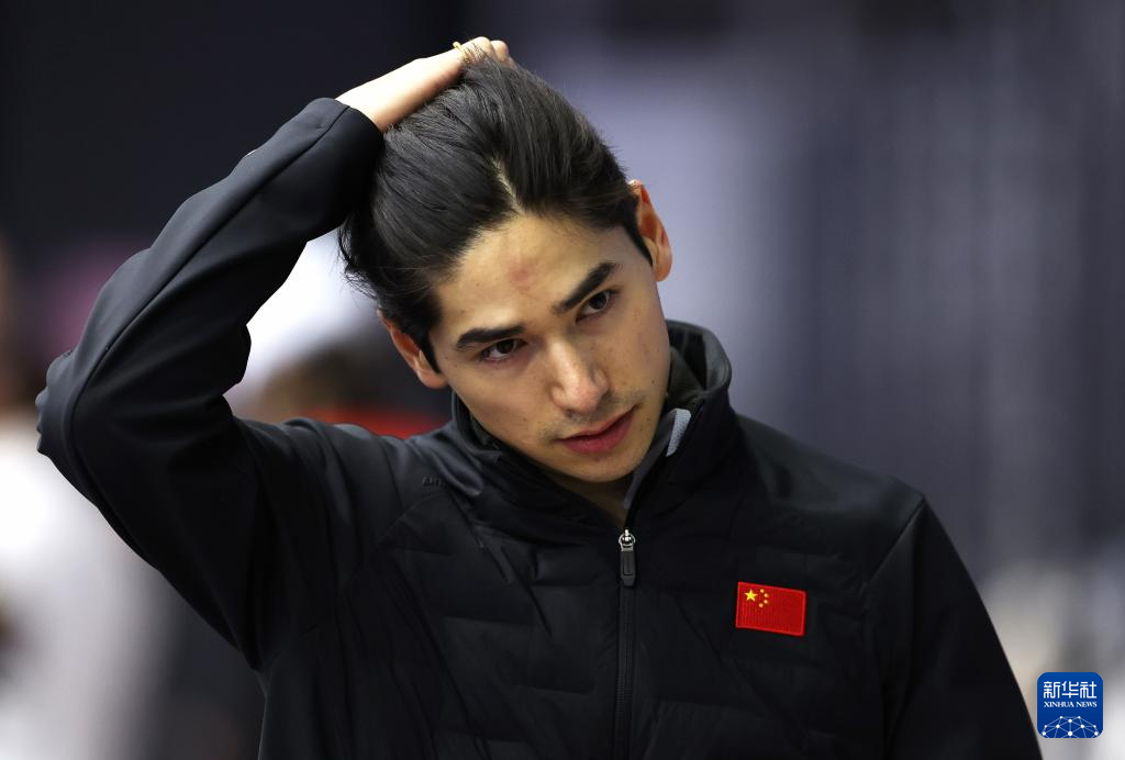 1月29日,中國(guó)短道速滑隊(duì)選手劉少昂在訓(xùn)練后。