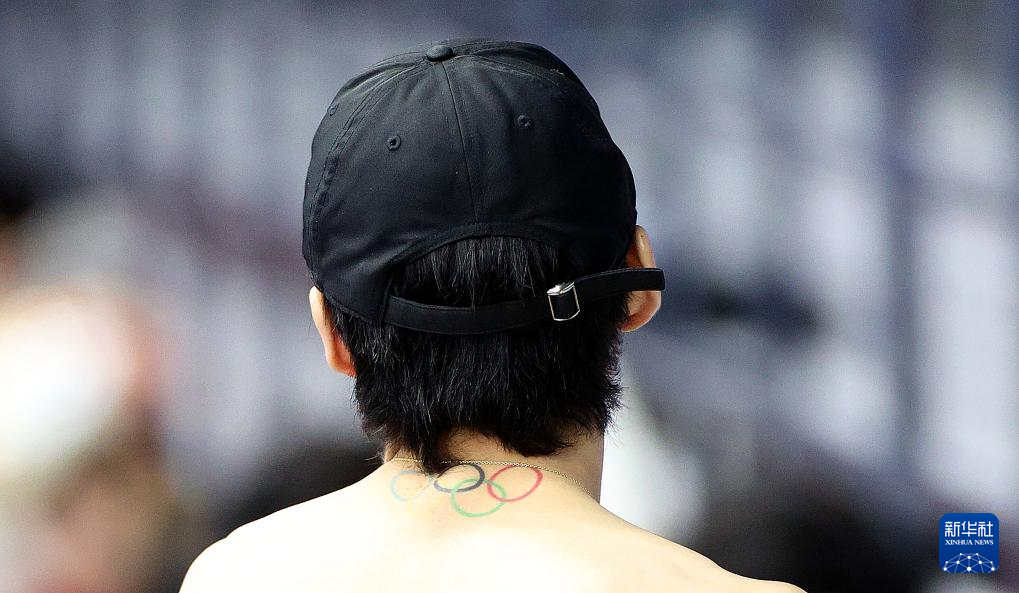 這是1月29日拍攝的中國(guó)短道速滑隊(duì)選手林孝埈脖頸處的奧運(yùn)五環(huán)紋身。
