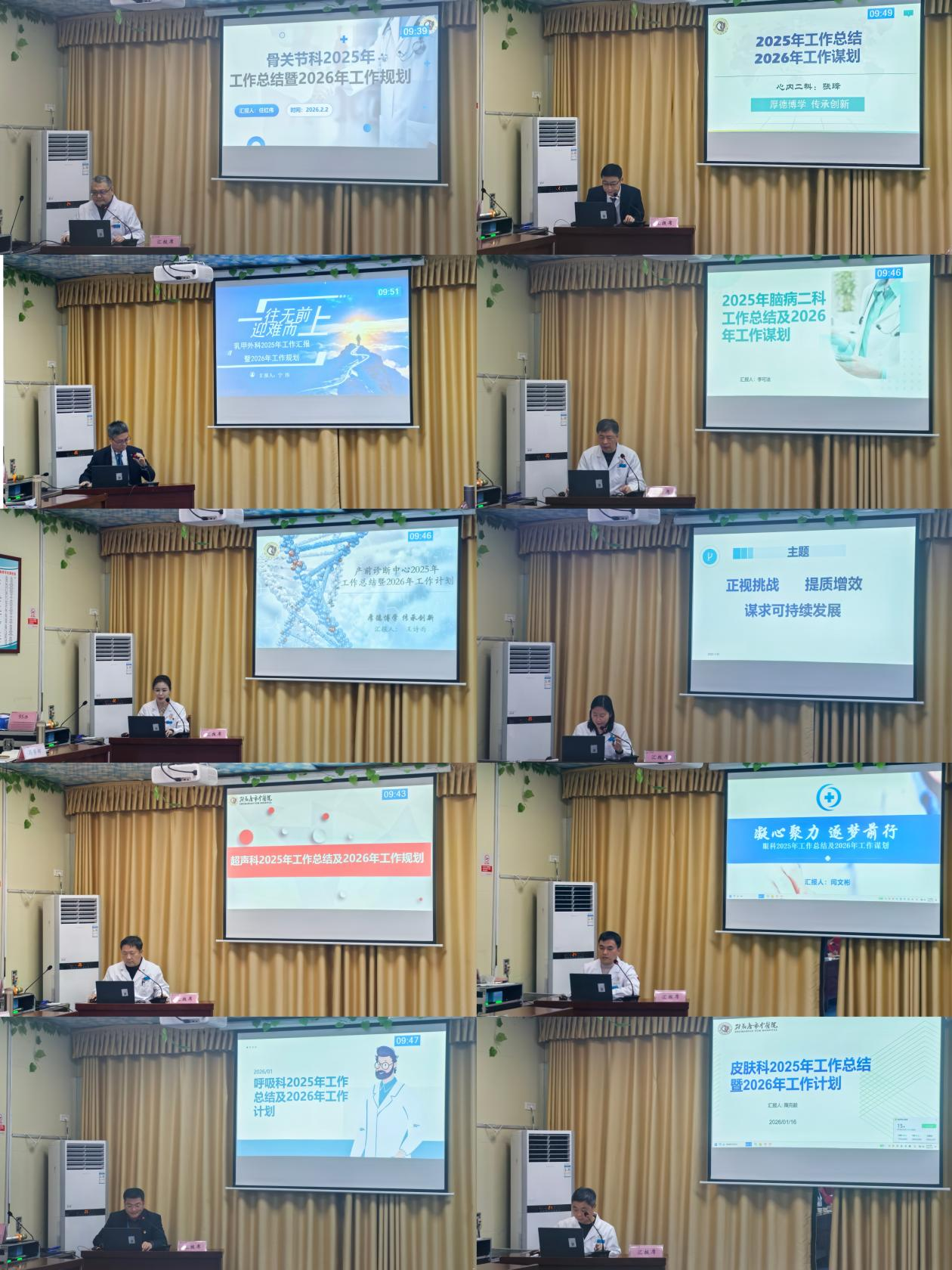 會上,60個臨床、醫(yī)技科室負責人依次登臺,聚焦未來發(fā)展,以圖文并茂的形式,就2025年度本科室、本領域的工作成效、亮點特色、存在問題與不足進行了系統(tǒng)匯報,并對2026年的工作計劃與展望進行了闡述。一幅幅緊扣醫(yī)院整體戰(zhàn)略、又各具科室特色的發(fā)展藍圖在屏幕上生動呈現(xiàn),展現(xiàn)了各科室負責人主動謀劃、實干爭先的精神風貌,也為全院新一年的協(xié)同奮進奠定了扎實基礎。