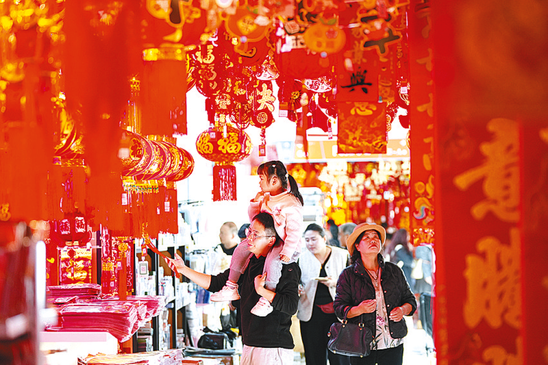 2月1日,市民在云南省昆明市俊發(fā)·新螺螄灣國(guó)際商貿(mào)城選購(gòu)春節(jié)飾品。 新華社發(fā)