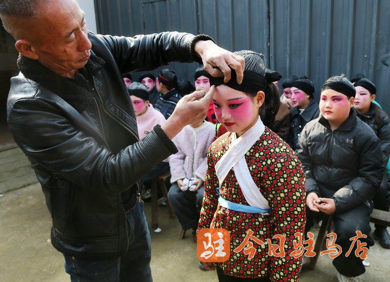 “王店大裝”流傳于泌陽王店,有著悠久的文化歷史,四百年來經(jīng)久不衰,具有重要的歷史、文化、欣賞和藝術價值。每次演出前,數(shù)十人的演出隊伍一派繁忙,化妝、穿古戲裝、上裝、綁扎、檢修設備、安排事項等,每一個環(huán)節(jié)都凝聚著傳承人的匠心與堅守。