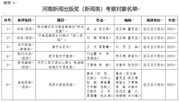 1.河南新聞出版獎(jiǎng)(新聞?lì)悾┛疾鞂?duì)象名單(駐馬店日?qǐng)?bào)社作品)