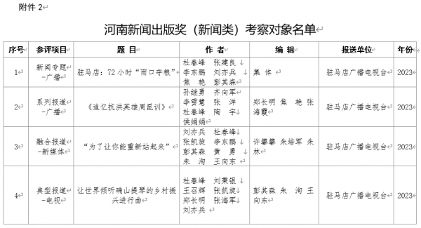 2.河南新聞出版獎(jiǎng)(新聞?lì)悾┛疾鞂?duì)象名單(駐馬店廣播電視臺(tái)作品)