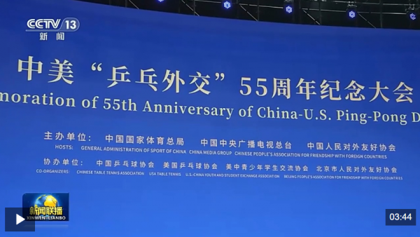 習近平向中美“乒乓外交”55周年紀念大會暨中美青少年體育交流系列活動啟動儀式致賀信